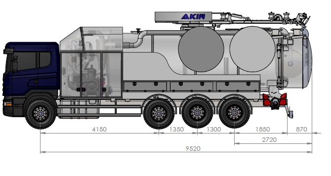 Kış korumalı kombine kanal açma ve temizleme aracı, vakum pompası, yüksek basınçlı su pompası ve kanaldan çekilen malzemenin depolandığı silindirik bir tanktan oluşur. Vakum özelliği yanında, kanal hatlarının yüksek basınçlı suyla yıkanmasını, tıkanıklıkların giderilmesini ve kanalizasyon rögarlarının temizlenmesini sağlar. Şehrin yapısına, kanalizasyon kanallarının çaplarına, çekilen malzemenin karakterine uygun tasarlanır ve üretilirler. Farklı tank ve pompa kapasitelerine göre 2 akslı, 3 akslı ve 4 akslı kamyonlar üzerine monte edilebilmektedir.